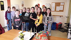 Mittwochs (1-2x im Monat) war unser Tag, um mit Frau Günther am Nachmittag ins Pflegeheim zu gehen. Mit Flöten, Gitarre, Notenständer und Taschen…