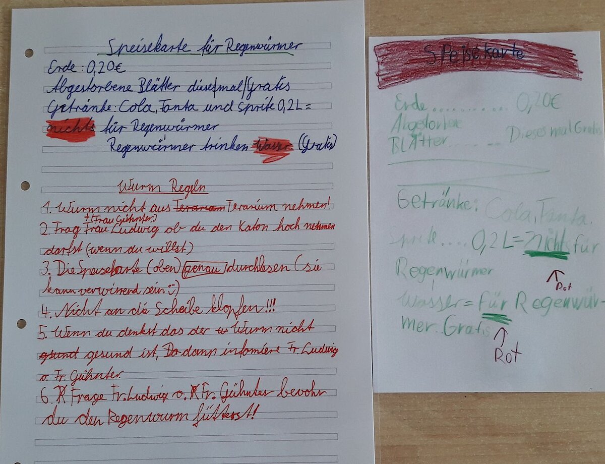Mit einem „Speise-“ und einem „Pflegeplan“ regelten wir die Versorgung unserer Schützlinge. Für die Nahrung knappsten wir jeweils sogar ein ganz klein bisschen von unserem Frühstück ab, wobei wir natürlich auf die gesunde Ernährung unseren Würmchen achteten.