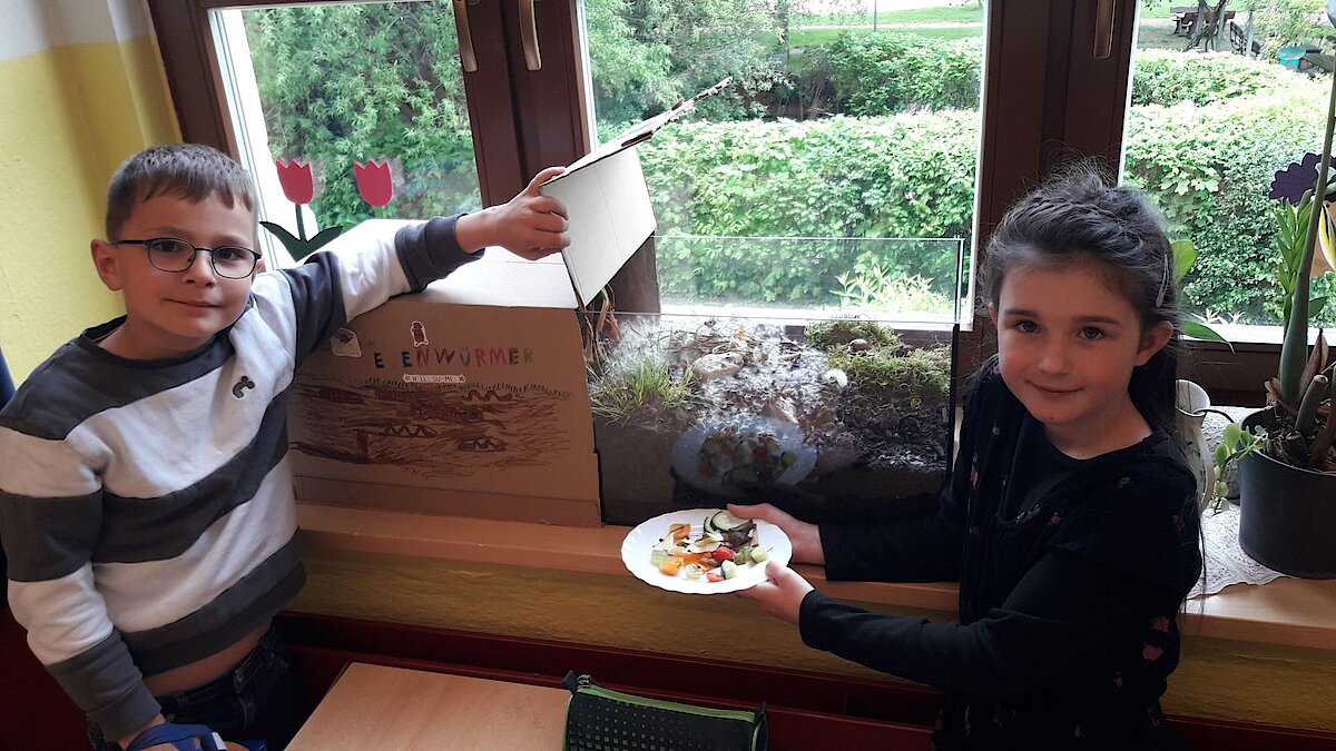 Im Mai führte die Klasse 3b eine Regenwurmwerkstatt durch. Unsere Mara brachte dafür sieben Regenwürmer mit in die Schule, für die wir ein artgerechtes Terrarium herstellten.