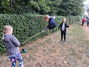 Eine davon ist ein Klassiker: das Sackhüpfen. Ebenfalls zum ersten Mal dabei war das „Balltrampolin“, welches sich großer Beliebtheit erfreute.