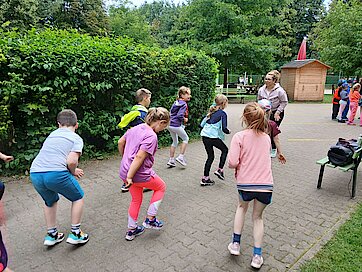 Nach den vielfältigen körperlichen Beanspruchungen, bei denen Kraft, Ausdauer, Geschicklichkeit und Schnelligkeit gefragt waren, stärkten sich die Kinder anschließend beim Mittagessen und gingen ausgepowert ins Wochenende.